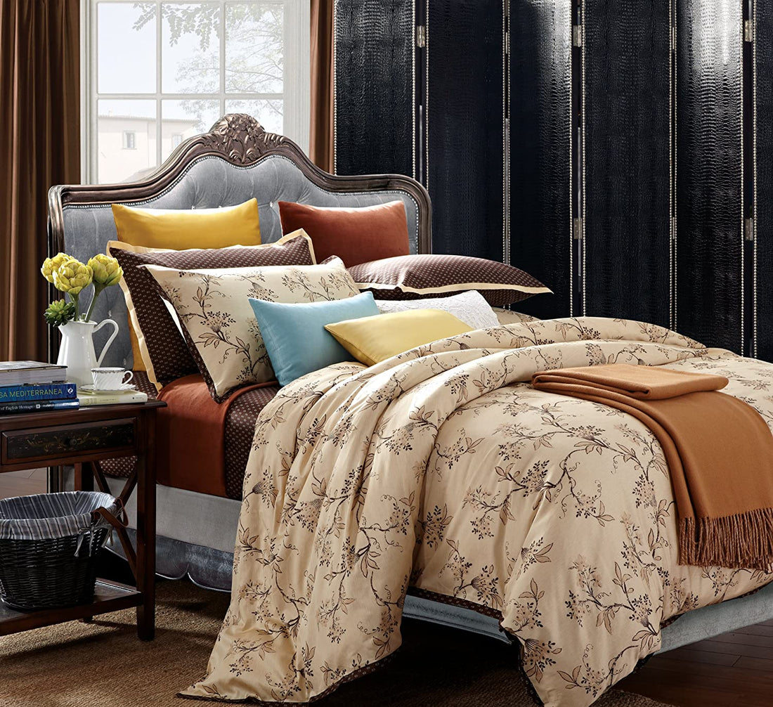 Relax in style and comfort with real 300 thread count 100% cotton duvet cover set, Asian Garden duvet cover set is completed with coordinated pillow shams, European shams, & decorative cushions. The overall look is one of the simplicity and elegance that will be enjoyed for years to come. The duvet cover & pillowcases, European pillowcases, and oblong pillows are made of 100% cotton