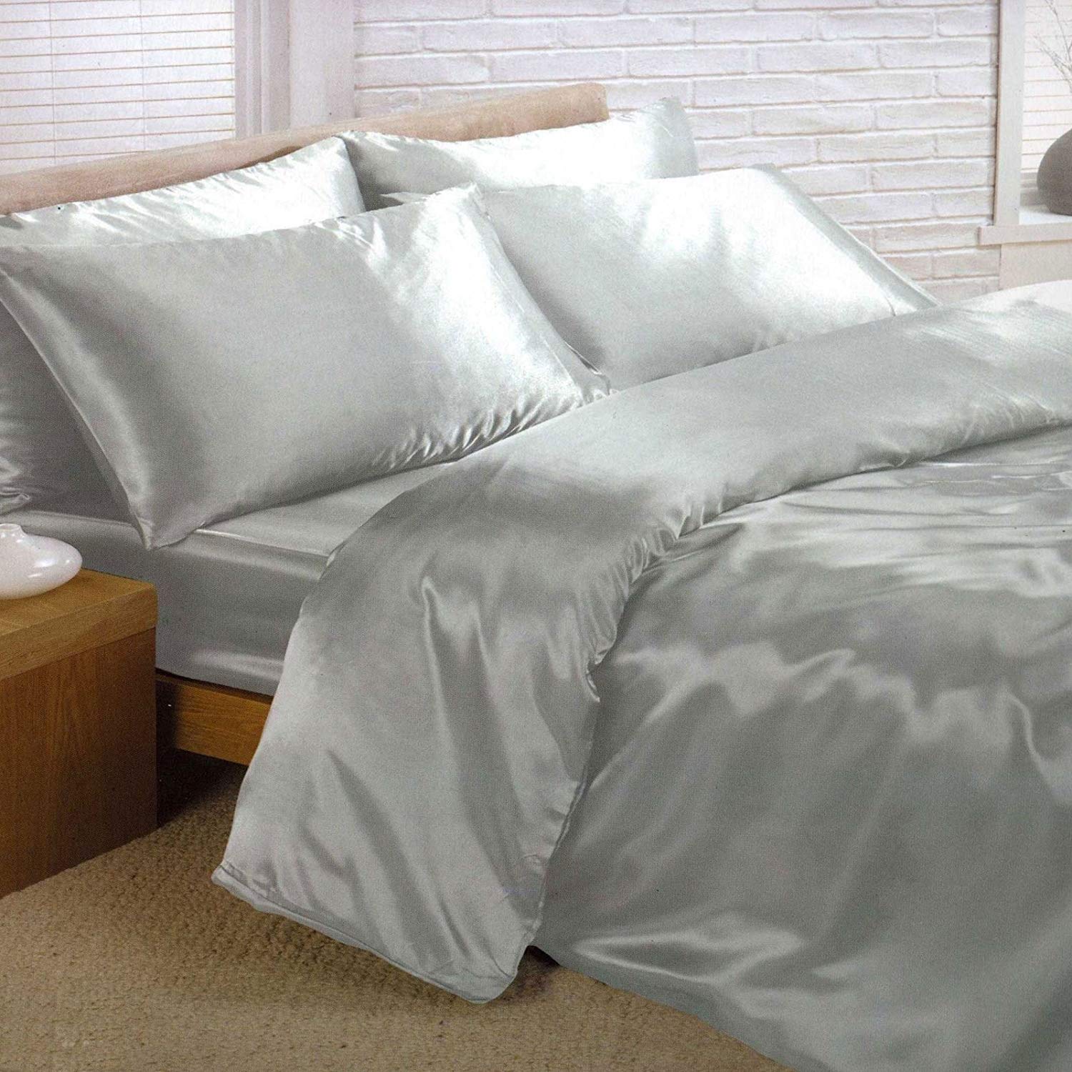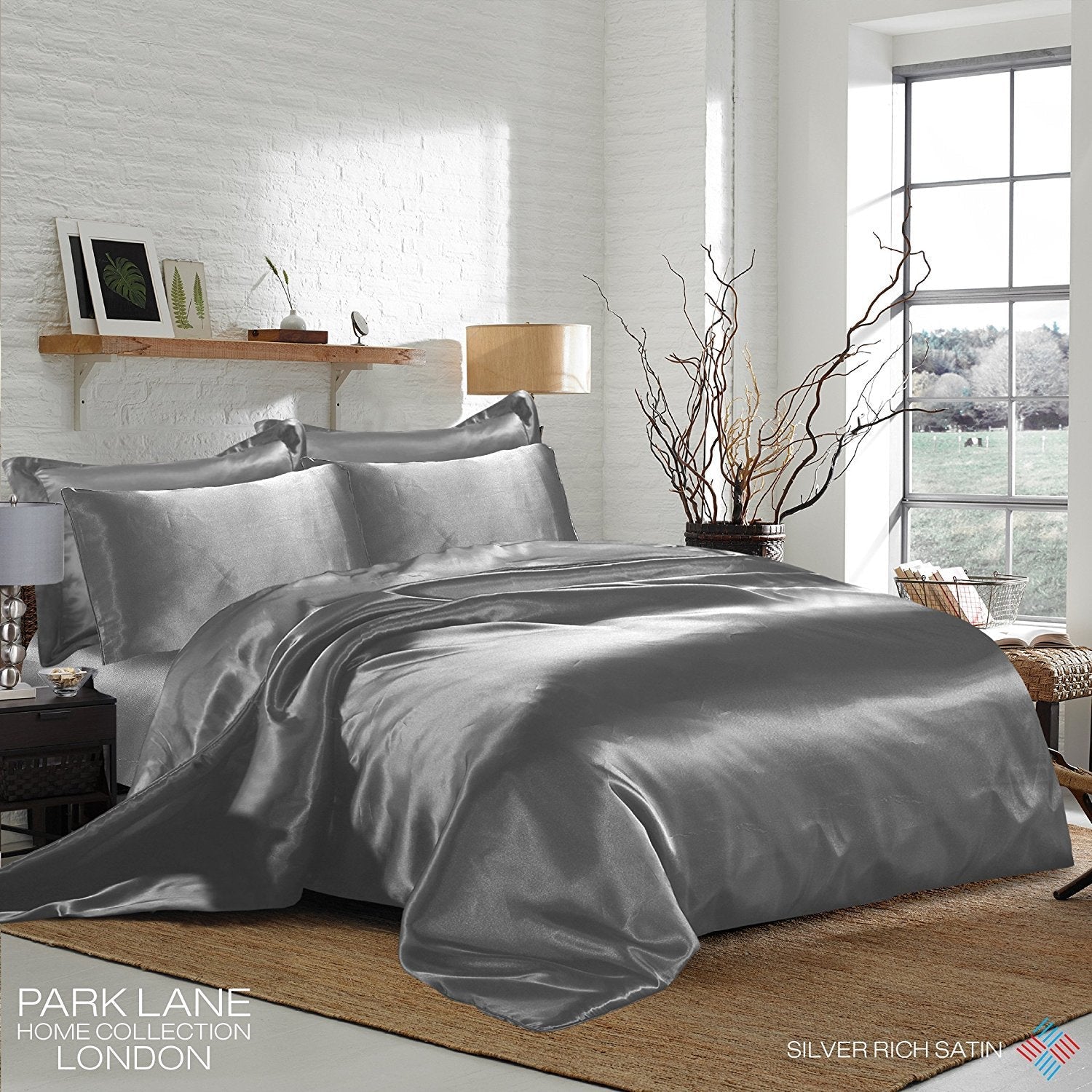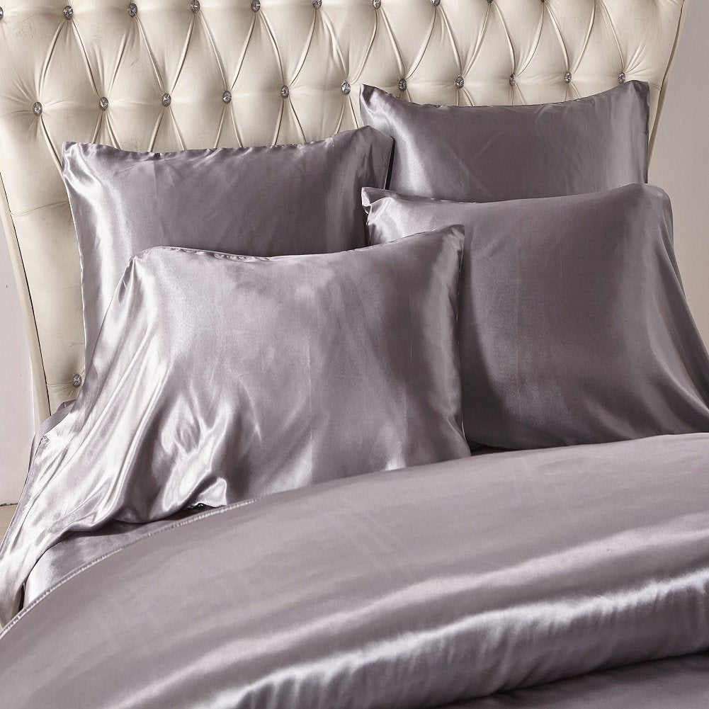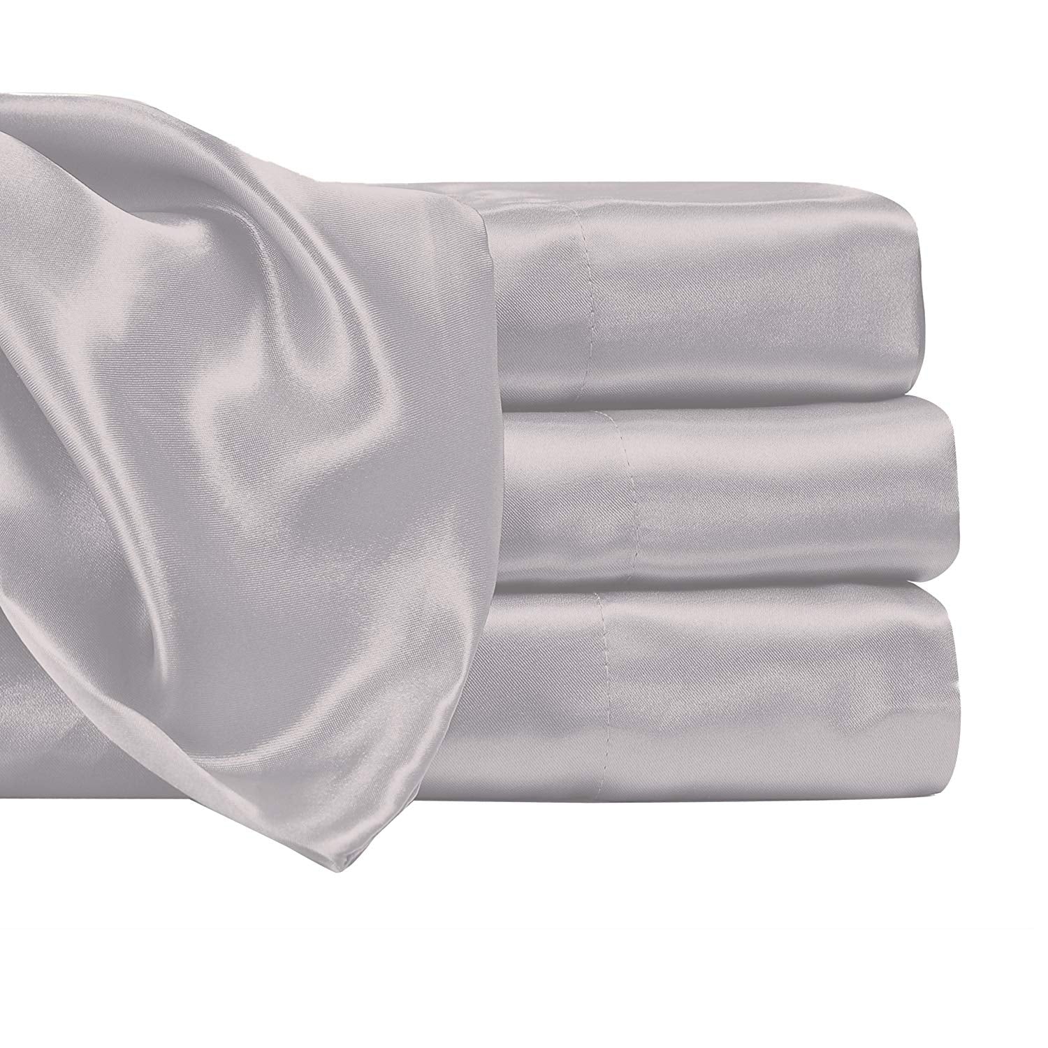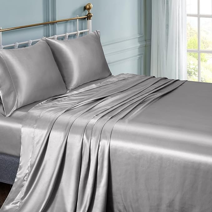 10 Inch Pocket Sheet Set 4Pc Mulberry Sateen Silk Silver Grey