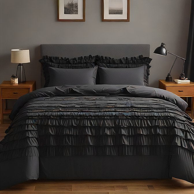 Black Ruffle Duvet Cover Set 3-Pieces Egyptian Cotton 1000TC