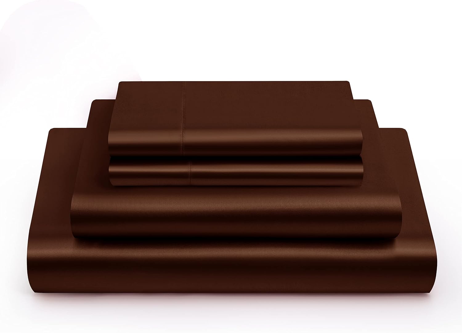 12 Inch Pocket Sheet Set 4Pc Mulberry Sateen Silk Coffee