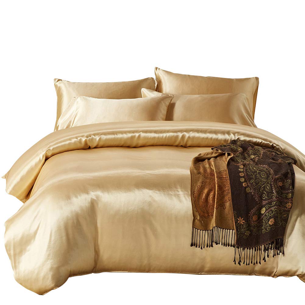 12 Inch Pocket Sheet Set 4Pc Mulberry Sateen Silk Gold