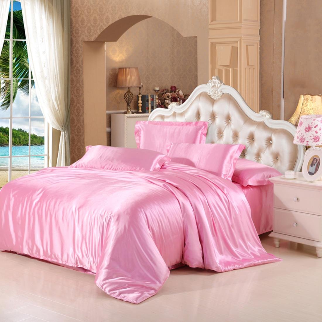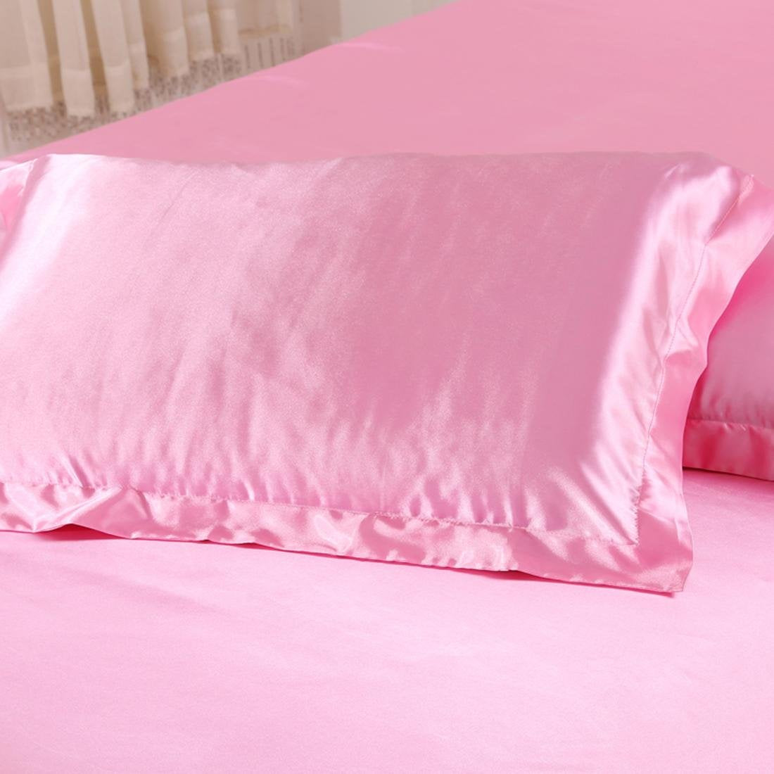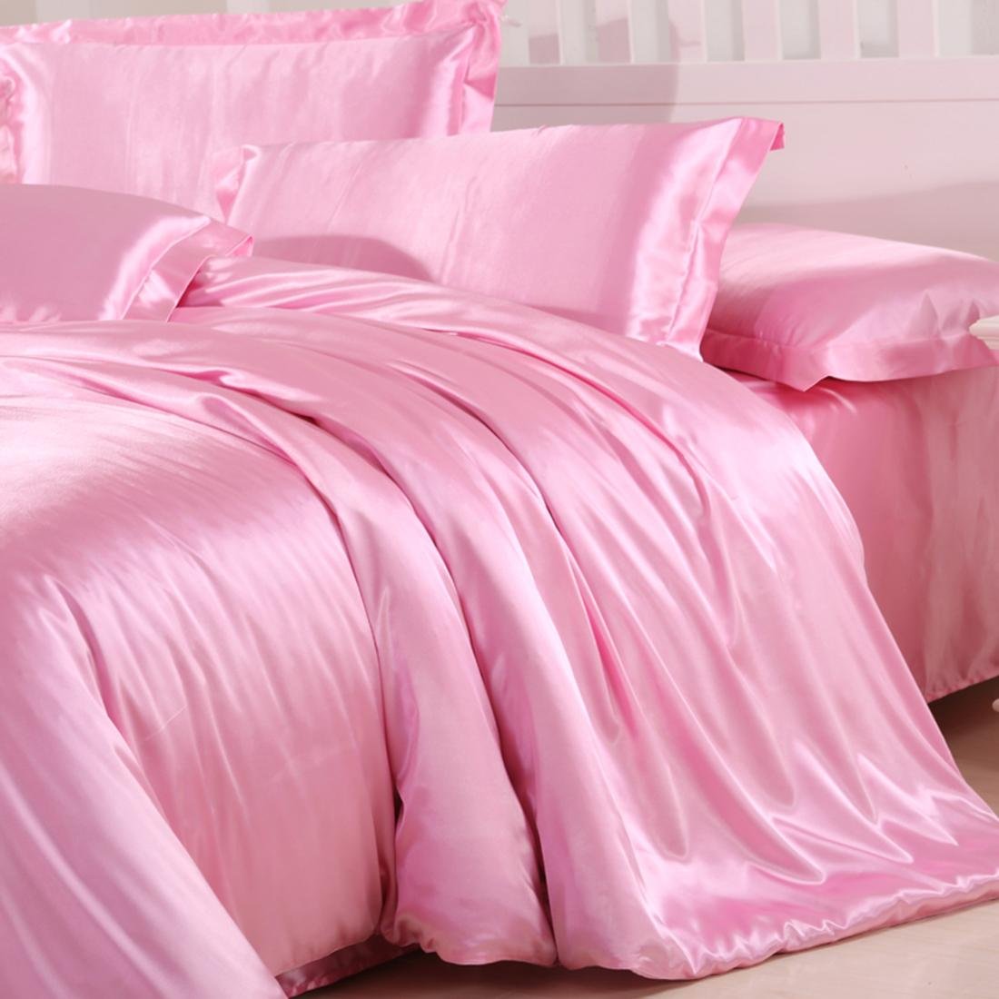 14 Inch Pocket Sheet Set 4Pc Mulberry Sateen Silk Baby Pink