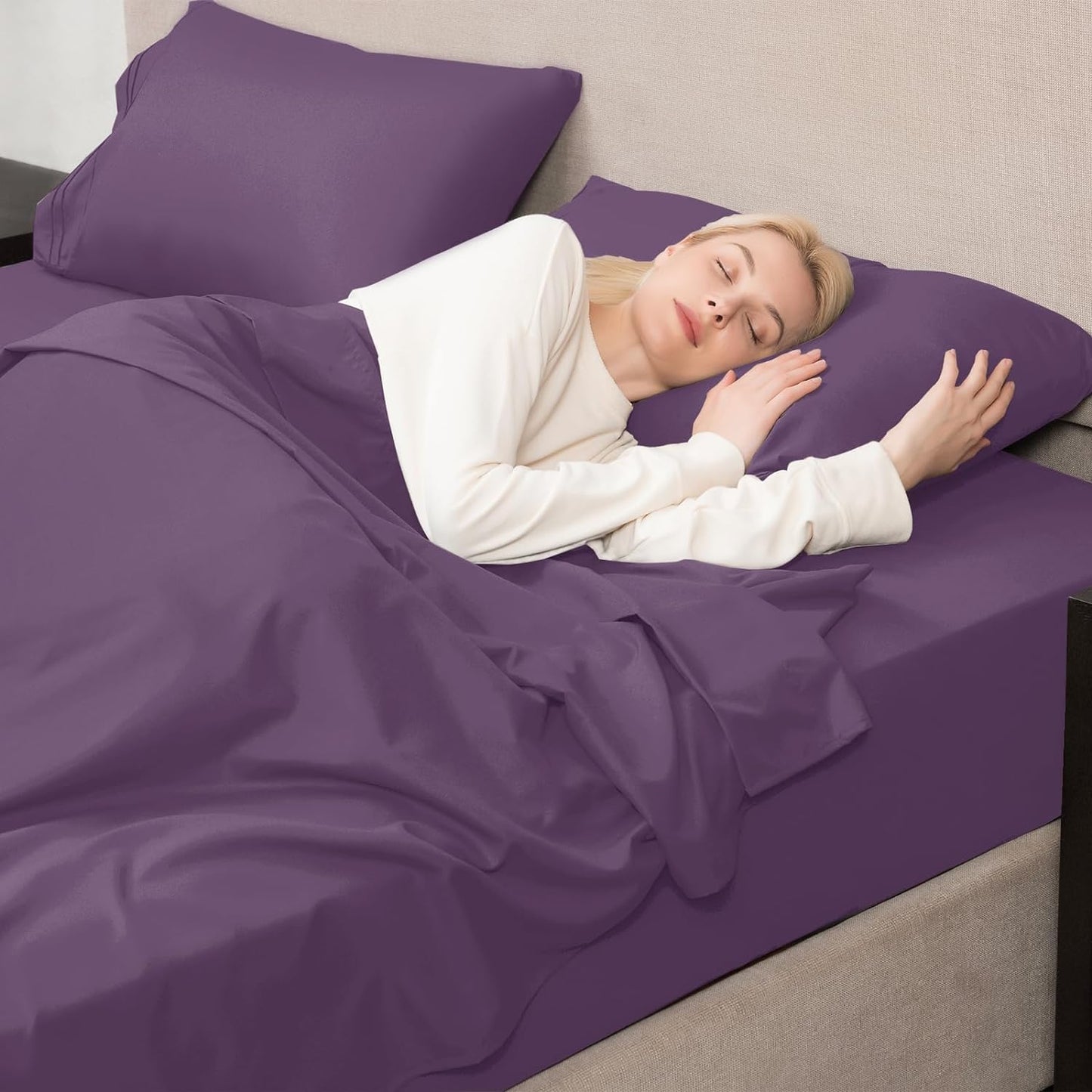 22 Inch Deep Fitted Sheet Plum 1000TC