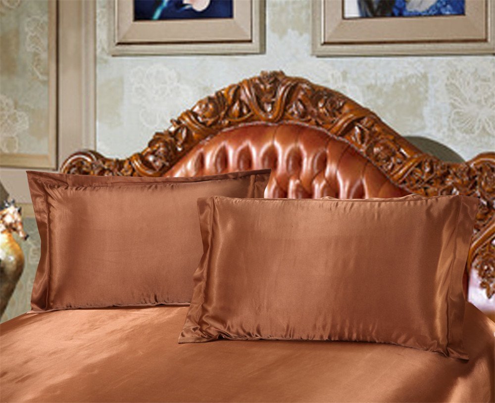 6 Inch Pocket Sheet Set 4Pc Mulberry Sateen Silk Coffee