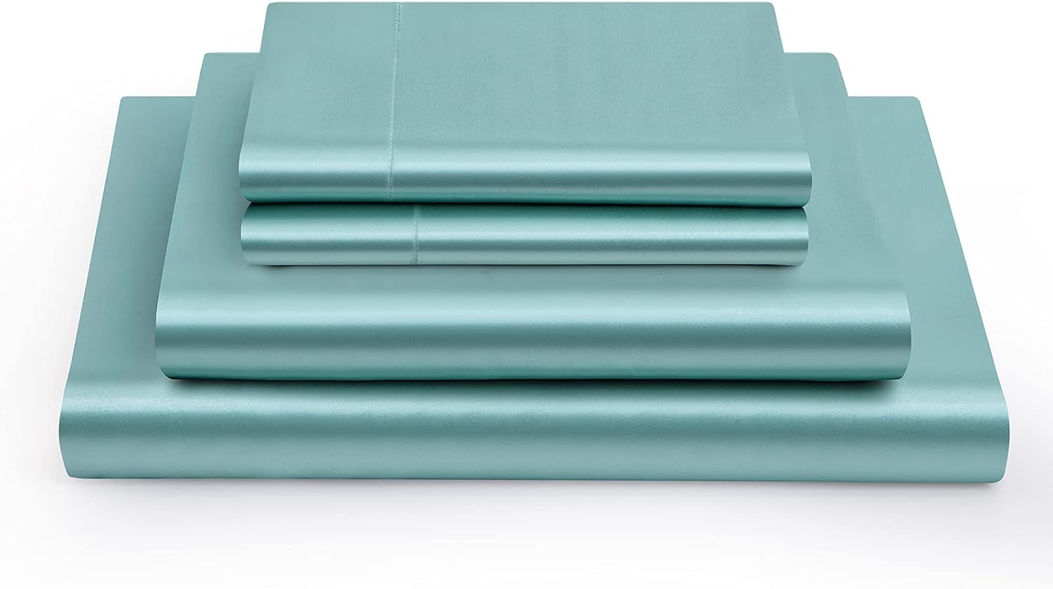 6 Inch Pocket Sheet Set 4Pc Mulberry Sateen Silk Aqua Blue