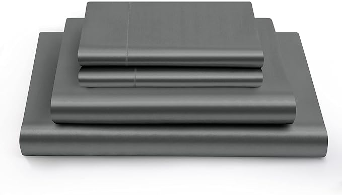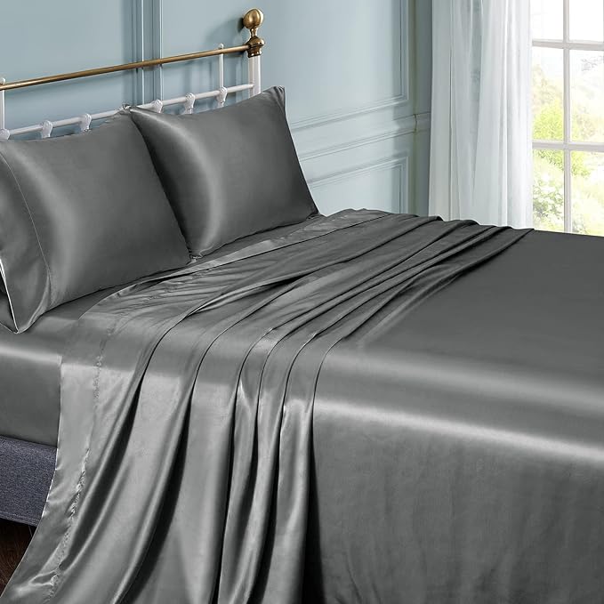 6 Inch Pocket Sheet Set 4Pc Mulberry Sateen Silk Dark Grey