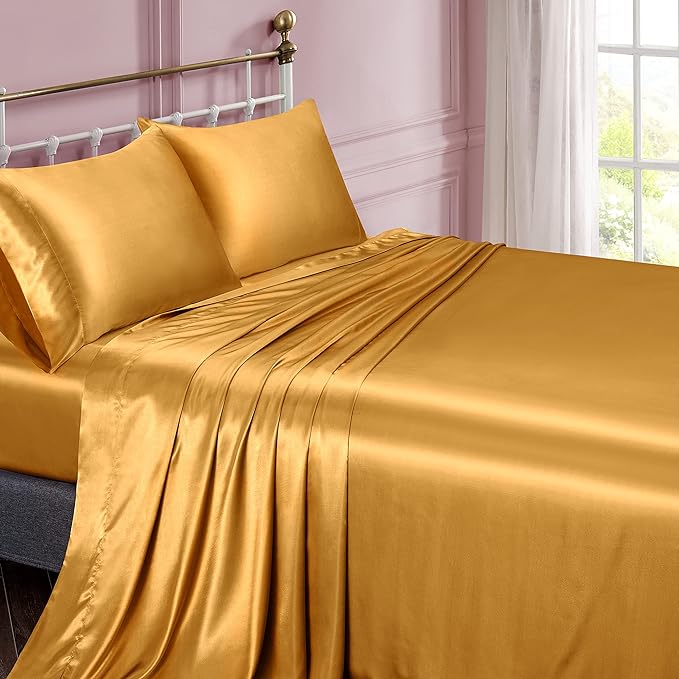 8 Inch Pocket Sheet Set 4Pc Mulberry Sateen Silk Gold