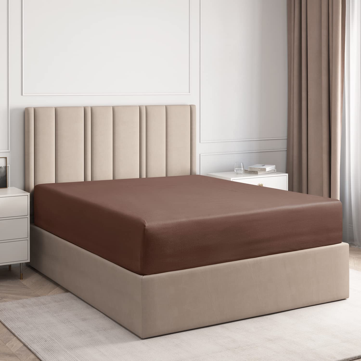 Sábana bajera de 17 pulgadas con bolsillo de algodón egipcio color chocolate sólido