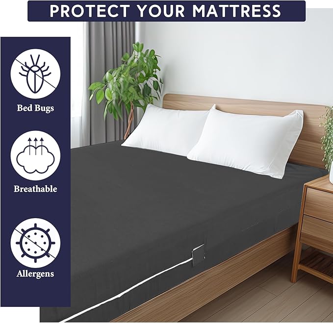 Sleep in luxury with our Zipper Fitted Sheet, made from 100% Egyptian cotton for soft, breathable, and durable comfort. The high-quality zipper closure ensures a secure fit and effortless bed-making. We use only premium zipper hardware for strength and a refined finish. The deep pocket design fits thick, pillow-top, hybrid, and memory foam mattresses, while the tailored construction gives a clean, hotel-style look. We ship worldwide and can customize your sheet to any country's size—contact us for specific measurements or custom sizes, and we will tailor your Zipper Fitted Sheet perfectly.